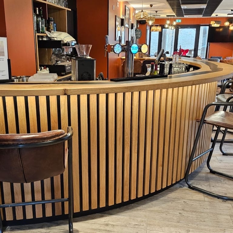 Bar moderne pour un établissement en Sarthe : Design épuré et finition impeccable.